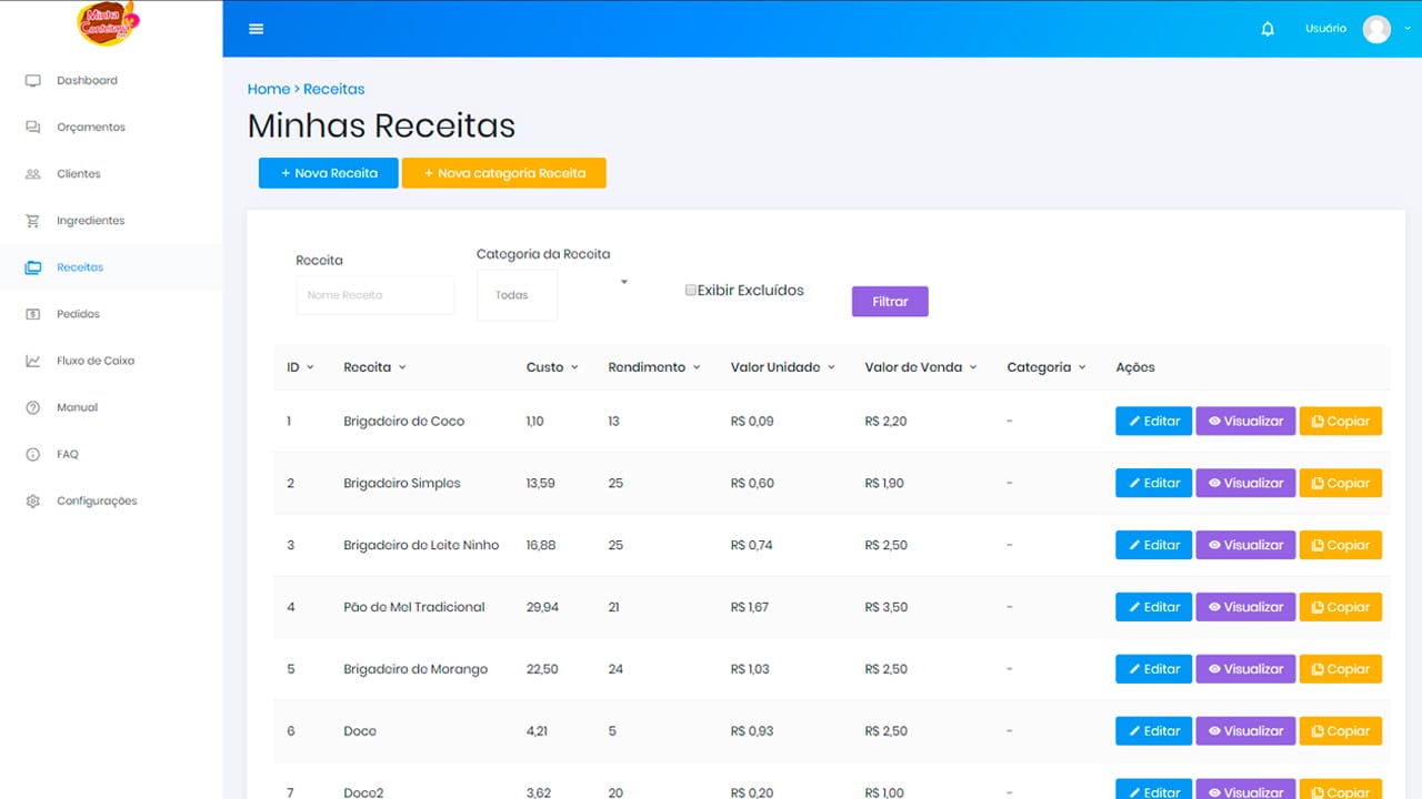 Possui ferramentas para precificação, controle de pedidos, lista qualificável de clientes, reunião de todas as suas receitas em um mesmo lugar, além de atualização automática de custo das receitas de acordo com o preço dos ingredientes.